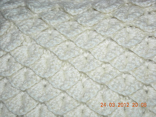 Poseta crosetata "solzi de sirena" acest model este luat de pe Youtube . Este crosetat din fir de lana crem, iar ca detaliu am folosit o floare de bumbac portocalie .